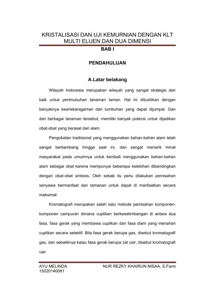 Pdf | on nov 30, 2020, indayana ratna sari published laporan praktikum kimia kromatografi lapis tipis | find, read and cite all the research you need on researchgate 2050, 88632 kota kinabalu, sabah tel: Penemuan resin sintetik dengan sifat penukar ion sebelum perang dunia ii telah dapat mengatasi pemisahan rumit dari logam … Memahami penelitian kualitatif dilengkapi contoh proposal dan laporan penelitian. Pembekalan dan penghantaran bahan tanaman kopi robusta sebanyak 20,000 pokok untuk pejabat pertanian keningau: